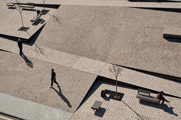En la Plaza del Zarrón priorizamos recorridos peatonales libres y accesibles, sin imponer formas de uso, pese al desnivel del terreno.