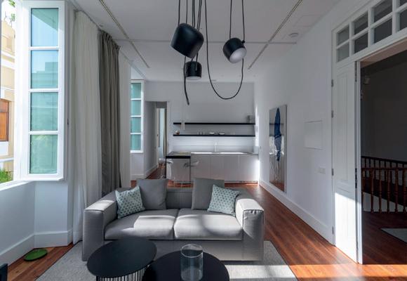Aunque el diseño bebe de la tradición mediterránea, también incorpora un toque inspirado en los años 70, en homenaje a la arquitectura original del edificio de esa época. Esta influencia se refleja en el uso de patrones geométricos, nichos integrados y celosías que filtran la luz.