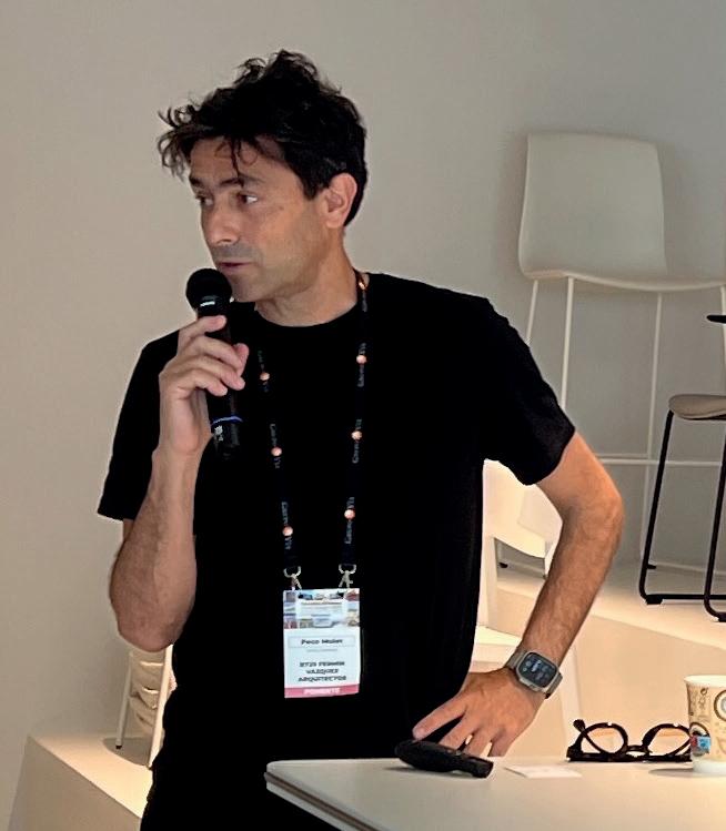 [...] , el reto de encontrar el equilibrio entre la unidad de vivienda y las zonas comunes, los riesgos asociados a la inversión que hacen que el sector Senior Living aún sea residual, la necesidad de diseñar con flexibilidad y espacios que sean más multiusos debido a los cambios de usuario/usos continuos, la importancia de los procesos de onboarding y buen uso de las instalaciones, las soluciones para el control de accesos, el impacto de la sostenibilidad en la elección del usuario o la importancia del mantenimiento a la hora de elegir materiales en este segmento inmobiliario, entre otros. 12, 13 y 14. Más de 60 profesionales acudieron a la segunda edición de este evento celebrada en el Inhalta Hotel Garden de Madrid 15, 16, 17 y 18. Pausa café + networking 19. Foto de grupo con ponentes, sponsors y organización