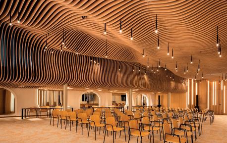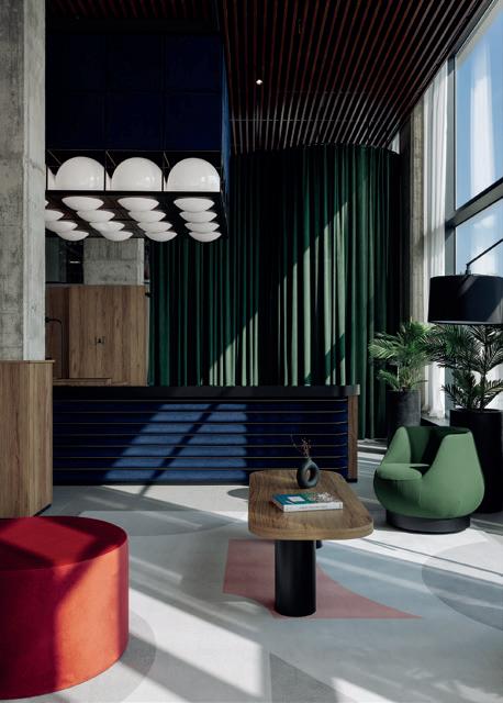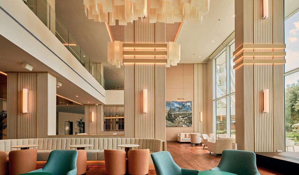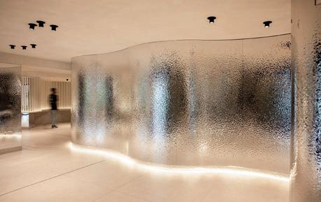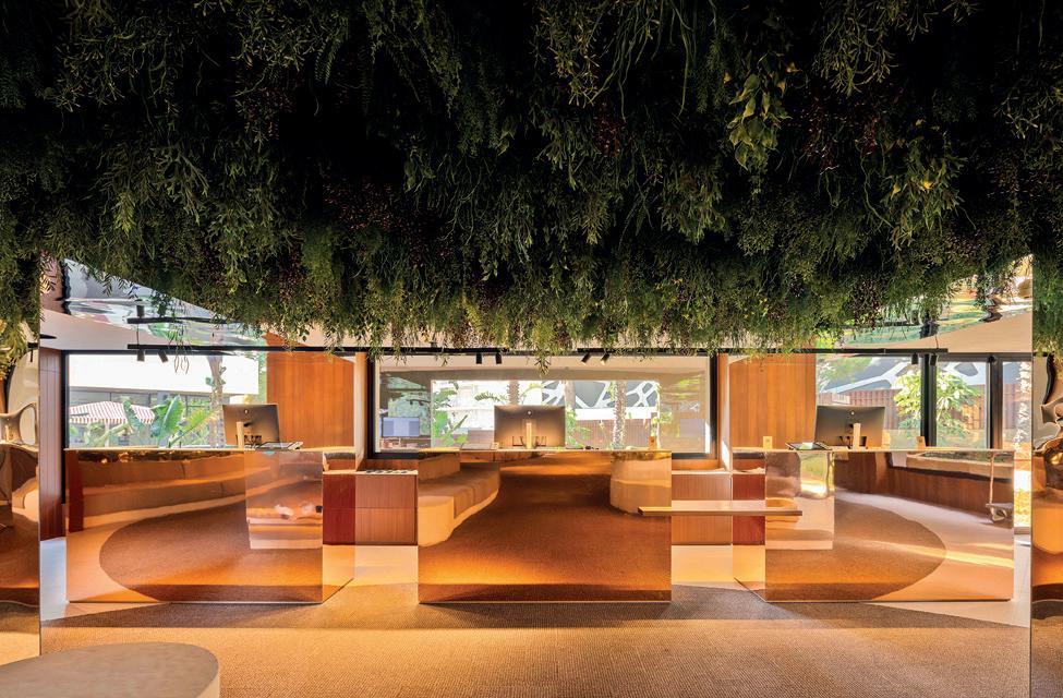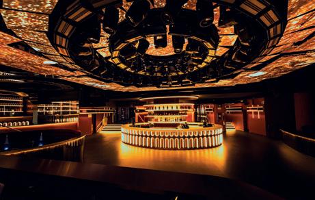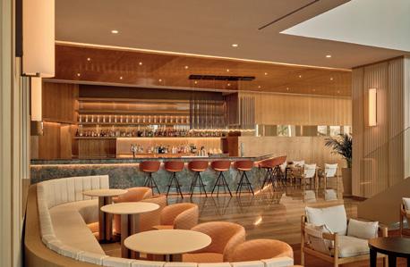 riales y una iluminación que actúa como auténtica escultora del espacio. El ambiente lujoso y relajante se construye con un diseño que prioriza las formas curvas y orgánicas (sofás, barras y mesas circulares) que fomentan la relajación, la conversación y eliminan las aristas duras, reforzando la sensación de bienvenida. Todo ello con una cuidada selección de materiales que