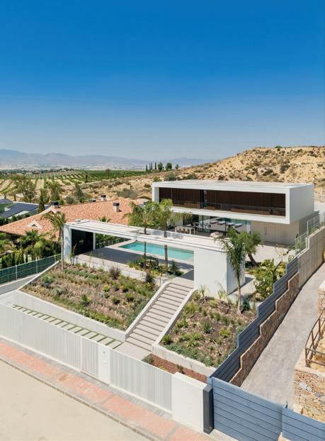 La vivienda abierta al entorno realizada por Srta. Rottenmeier se sitúa sobre un terreno elevado con un diseño de volúmenes desplazados y la dualidad de sus visuales.