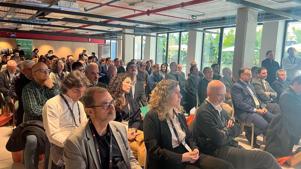 15 y 16. Cerca de 90 profesionales del sector acudieron a esta nueva edición del evento en Barcelona celebrad en el showroom de Actiu 17. En el debate final se abordaron temas como el de cómo subir ocupaciones en oficinas y coworkings ante un 73% de los empleados que no quieren la vuelta a la presencialidad, cómo rehabilitar el 78% de las oficinas de Barcelona en riesgo de quedar obsoletas, la oportunidad de las ciudades cercanas para ofrecer edificios óptimos para las empresas antes la baja tasa de disponibilidad en zonas Prime, el impacto de la posibilidad del trabajo líquido en otras tipologías de edificios, el papel de la normativa ante la demanda de proyectos de usos mixtos, o qué amenities tienen más éxito y más fracaso, entre otros temas. 18, 19 y 20. Pausa café + networking 21. Foto de grupo con ponentes, sponsors y organización