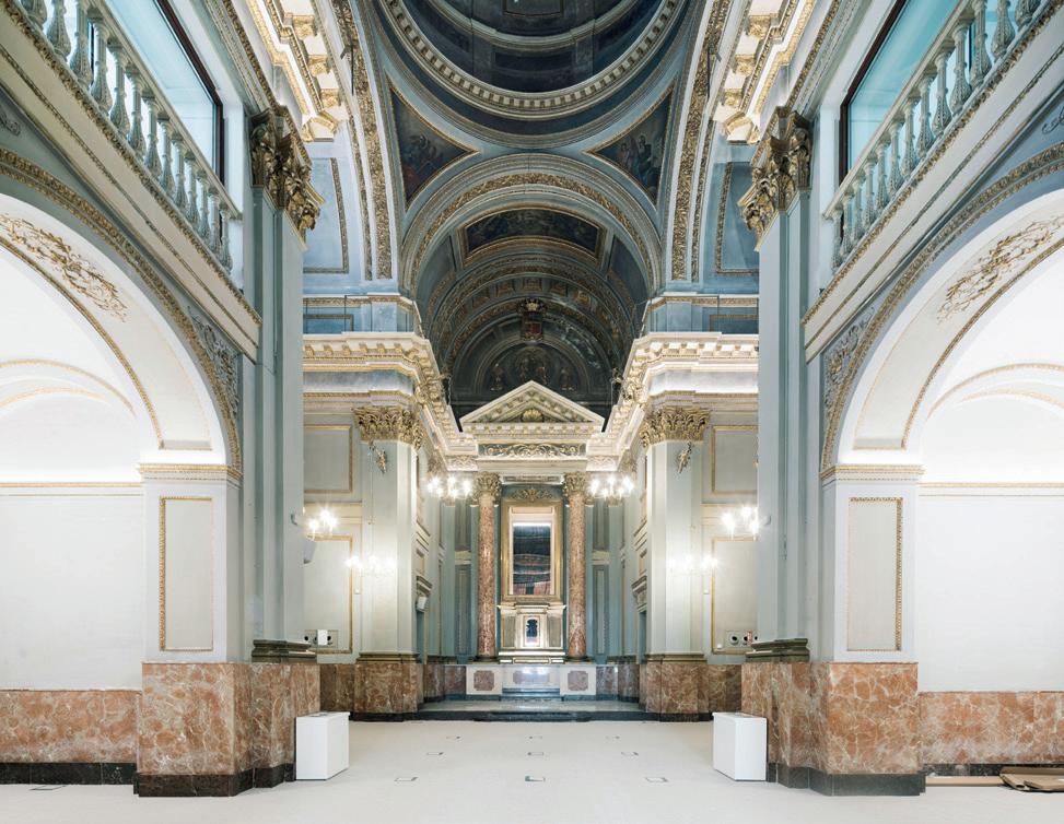 yendo la materialidad original. La recuperación de las fachadas hacia la plaza del Carmen y la repristinación del edificio decimonónico buscan devolver calidez, vida y presencia urbana a un conjunto largamente abandonado, sacando a la luz sus valores ocultos: pinturas murales, texturas y memoria construida, ahora conectadas desde el interior como una sola experiencia.