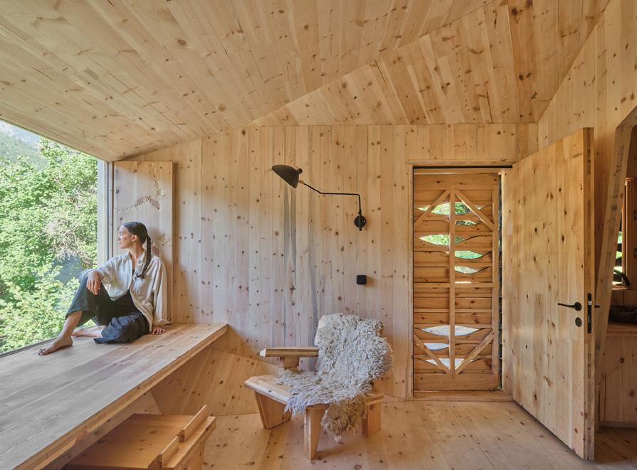 Al este, la calma. El estudio silencioso, la bañera abierta a la montaña, el arranque lento del día bajo la luz de levante.