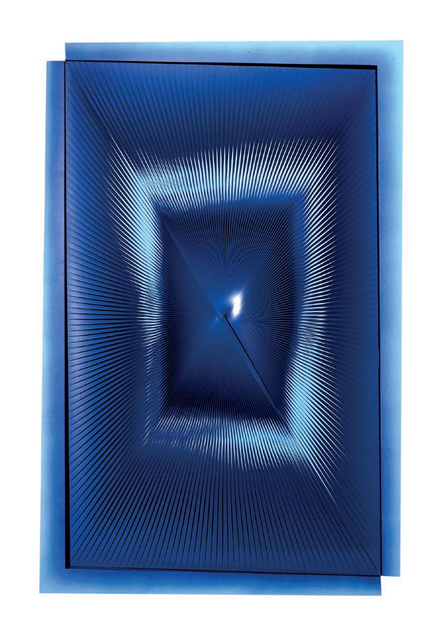 Biasi Alberto, Disperdersi nel tramonto del blu, 2009 lamelle in PVC e acrilico su tavola, 141 x 91,5 cm