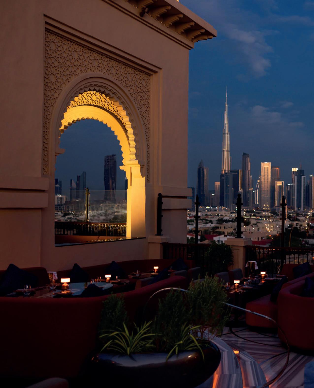Sushisamba, on the 51st foor of Palm Tower in Palm Jumeirah, fuses the best of Japanese, Brazilian and Peruvian food. Get ready to admire the enchanting skyline, while the chefs in the open kitchen prepare an array of sushi and grilled fsh to amaze and delight the eye and the palate. An oasis suspended in the sky, with little details that make it an unforgettable experience.