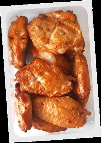Karštai rūkytos aštrios viščiukų vidinės sparnų dalys, ŽEMAIČIŲ koldūnai su mėsa,