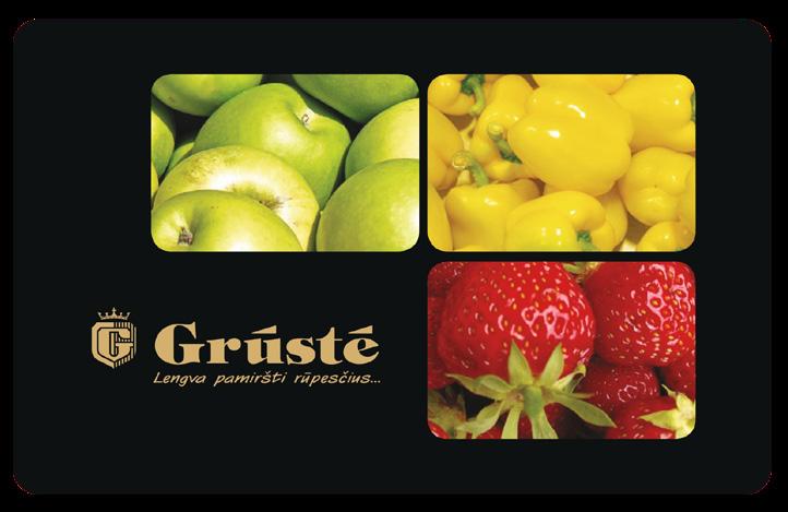Nuolaidos nesumuojamos. Nuolaidos suteikiamos kasoje. Prekių kiekis ribotas. Jeigu kainos ar kita informacija, nurodyta leidinyje, nesutampa su kainomis ar kita informacija, nurodyta prekybos vietoje – tai spaudos klaida. Prašome vadovautis kainomis, nurodytomis prekybos vietose. Daugiau informacijos svetainėje www.gruste.lt ir prekybos vietose.