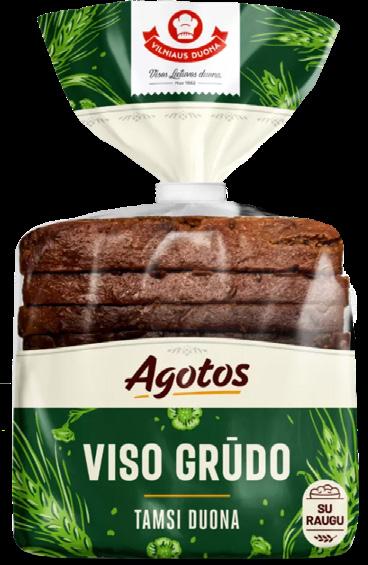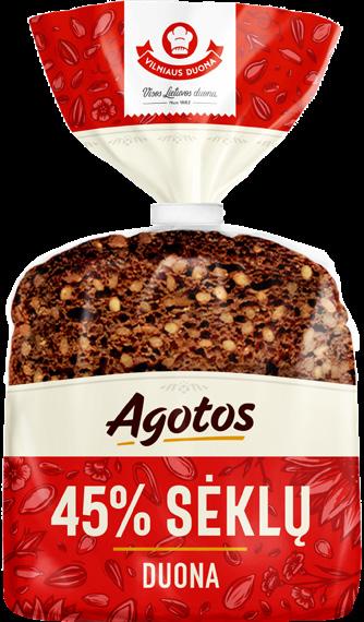 Viso grūdo tamsi AGOTOS duona su raugu, 300 g AGOTOS 45 % sėklų duona, 350 g