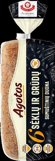 AGOTOS 6 sėklų ir grūdų sumuštinių duona, 470 g