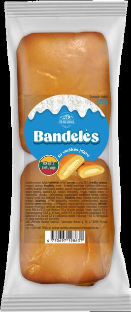Sluoksniuota BANDELĖ su karameliniu įdaru, 70 g BANDELĖS su varškės įdaru, 120 g