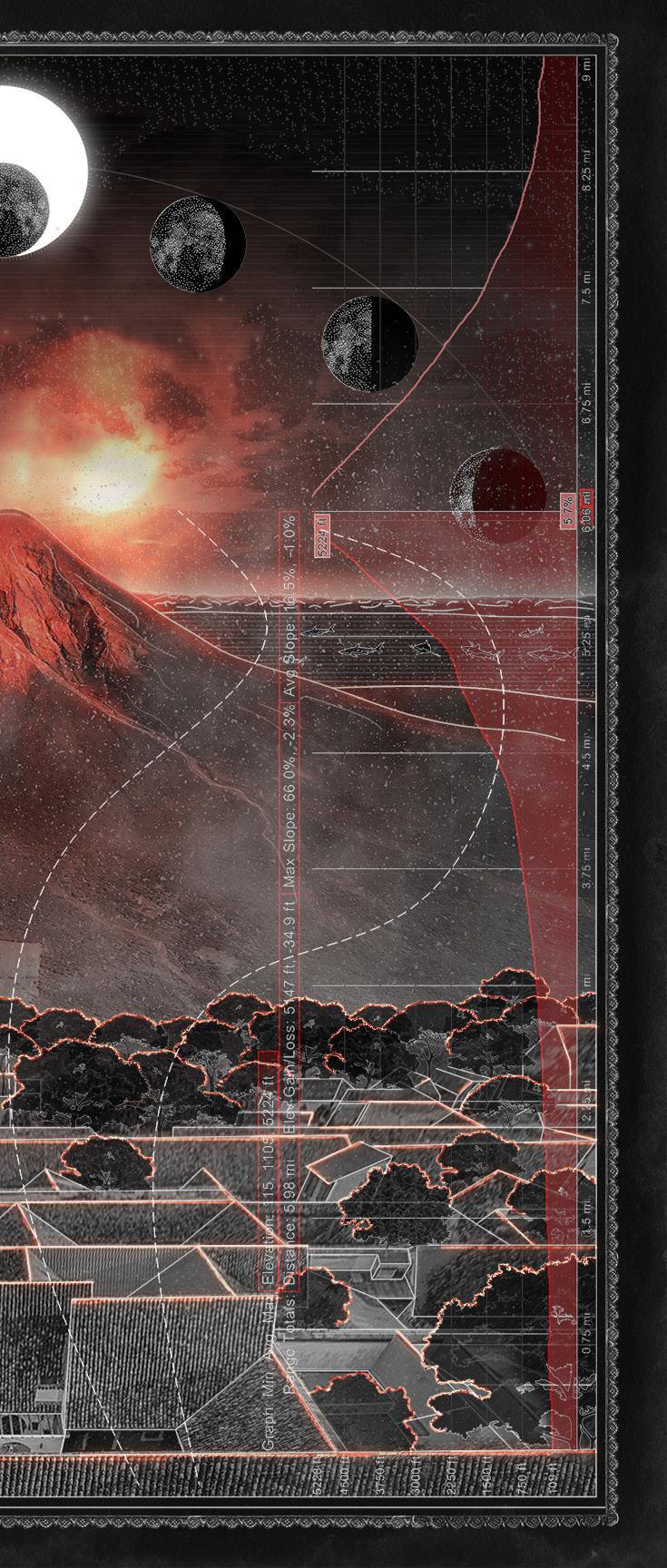 Image 08: “Ciudad, Volcán”. Mapping of volcanic colonial city architype. Photomontage by Oscar M Caballero.