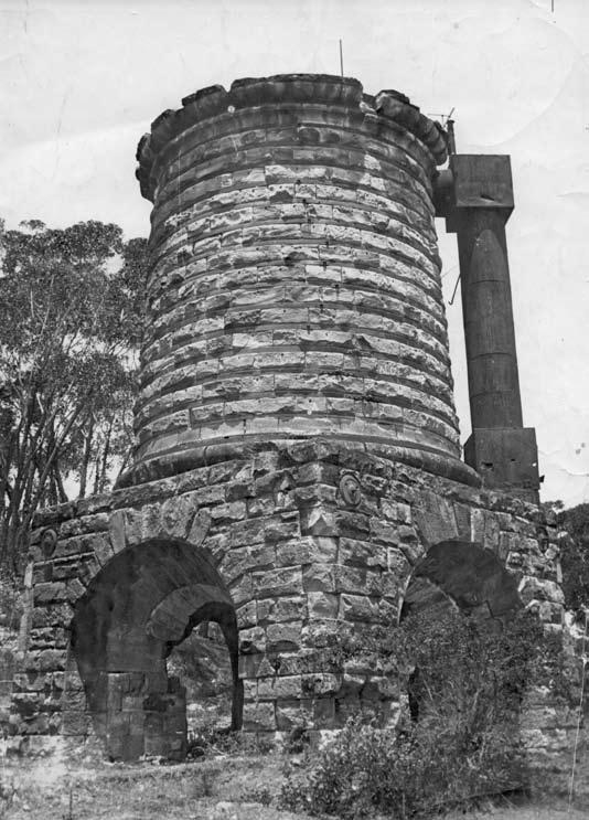 David Branagan has passed on this splendid photograph of the blast furnace at the FitzRoy Iron Works near Mittagong in New South Wales. He received the picture, and permission for it to be published, from W. R. Palferey of Moss Vale. The date of the photograph is unknown. With the recent interest in iron ore by the geological fraternity, it is opportune to recall that the first attempt to smelt such ore in Australia took place at Mittagong in 1852 when a small blast furnace was erected to smelt locally occurring limonite. The plant was opened by Governor Sir Charles FitzRoy, and the works named in his honour (Harper, 1923).