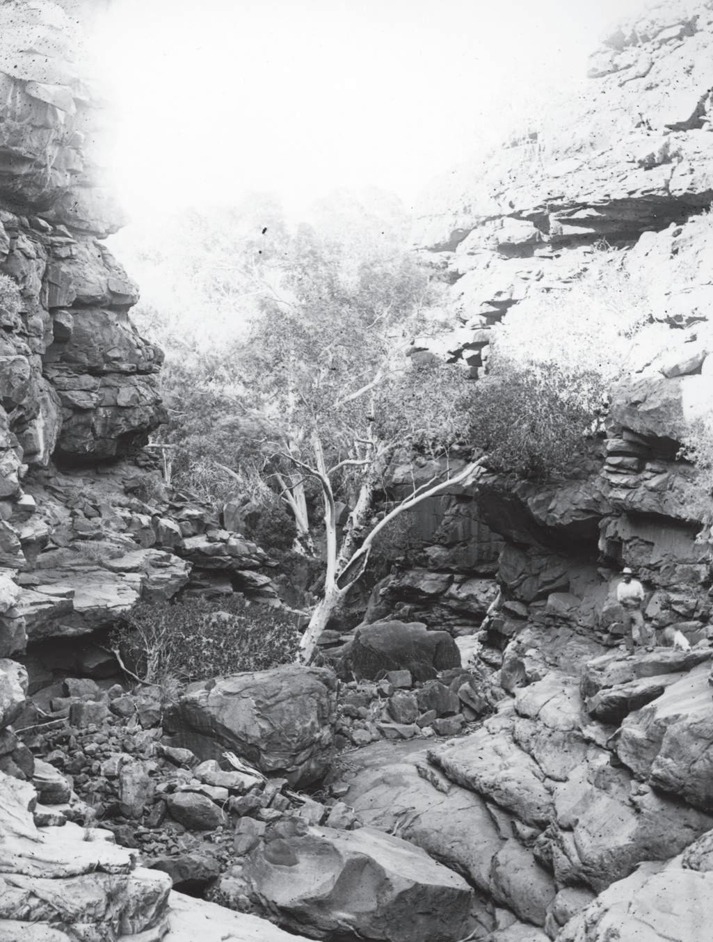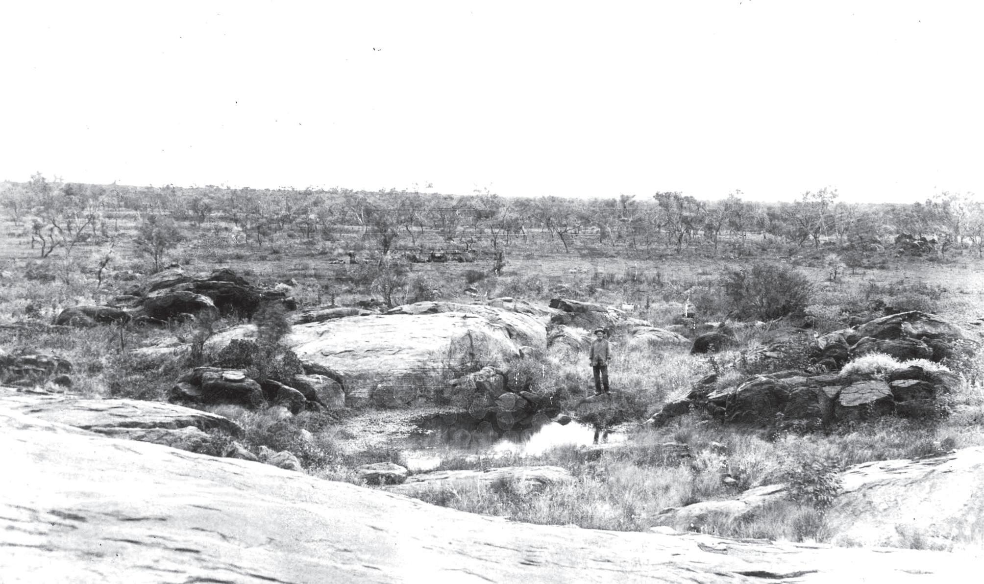 Figure 5 “Spring Granite” (25º 55’ S, 126º 44’ E) provided a welcome source of water for explorer John Forrest during his expedition from the Western Australian coast to the Adelaide – Darwin telegraph line in 1874. (Photo H.W.B Talbot; GSWA gpn 1506).