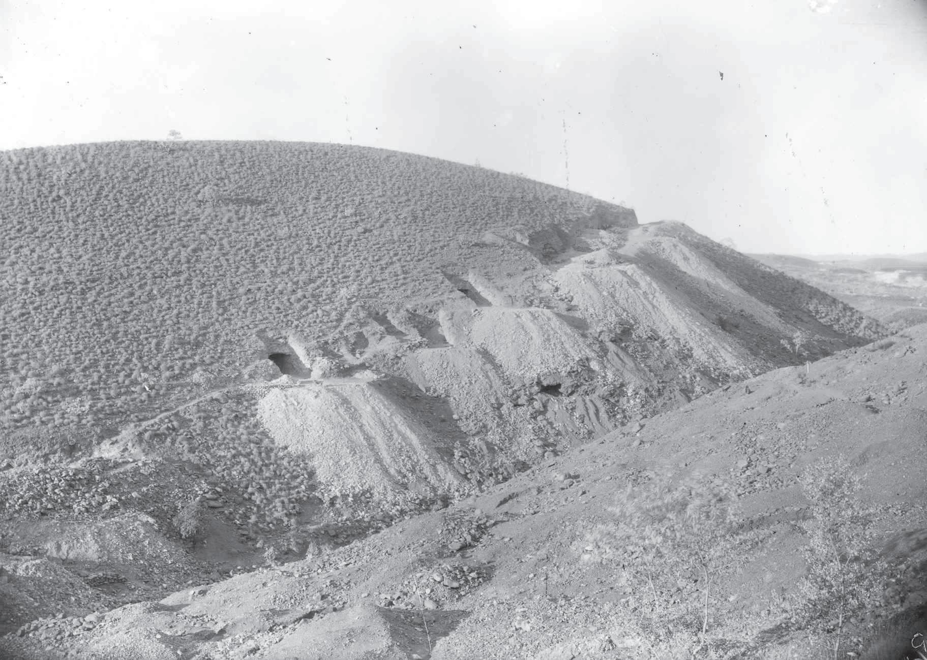 Figure 8 The Mount Cassiterite tin mine at Wodgina (21º 12’ S. 118º 41’ E) in 1912. This was the only significant underground tin mine in the Pilbara region, yielding about 250 t of tin concentrate between 1904 and 1918. In more recent times, the lode has been incorporated into open-cut workings that include nearby pegmatite deposits with the main mineral of interest being tantalite. (Photo T. Blatchford; GSWA gpn 844).