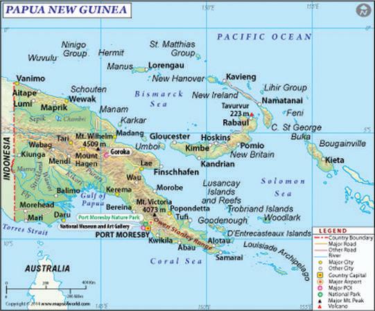 Figure 1 Locality map showing main towns in Papua New Guinea and islands. Map reproduced with kind permission of Maps of the World. (www.mapsofworld.com )