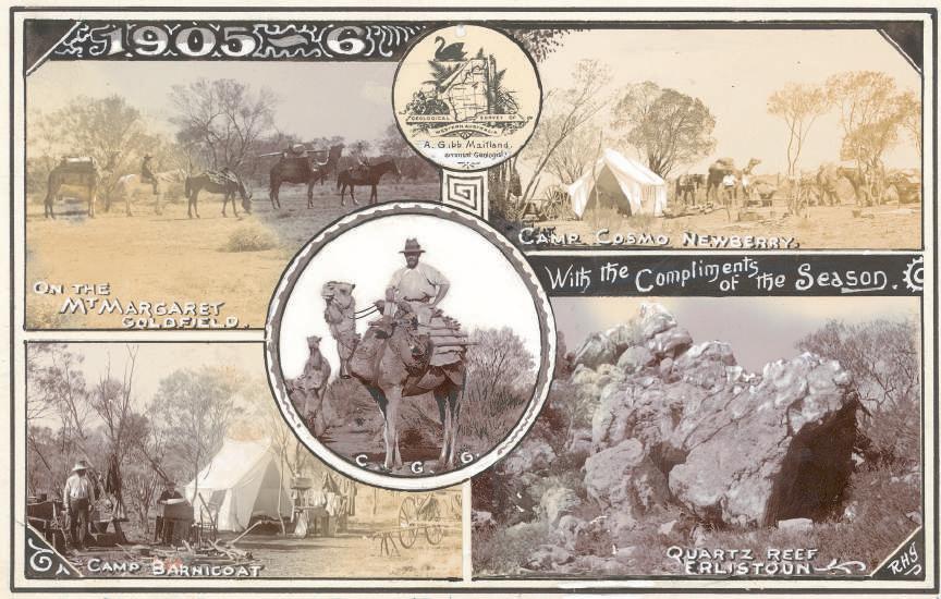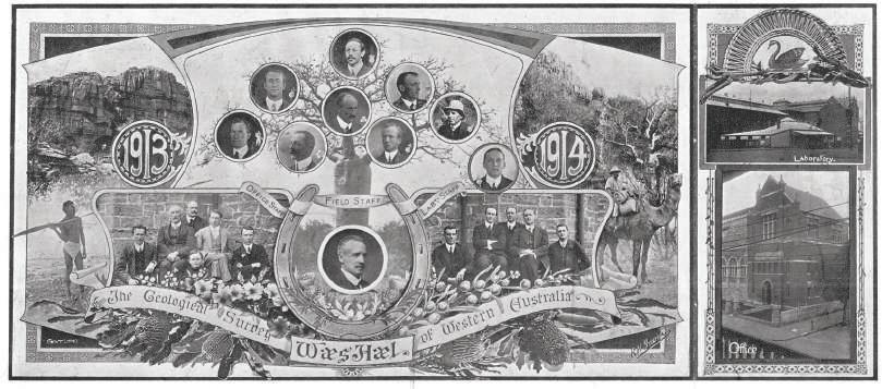 From about 1896 to 1928 staff of the Geological Survey of Western Australia carried cumbersome, glass-plate cameras into the field to record rock outcrops, mines, field activities and scenes of general interest. The collection of 1792 glass-plate negatives, now transferred onto film, contains about 1240 field photos taken during this period, the remainder being of laboratory specimens and GSWA staff. It represents a little-used archive of images of value to those researching the State’s early mining history or interested in retracing some of the arduous expeditions undertaken by its geological pioneers.