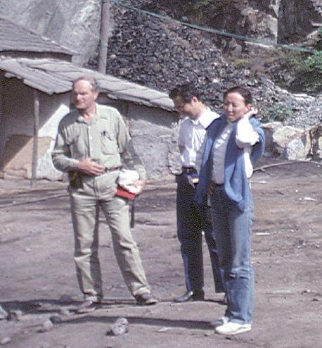 Figure 1 Peter Dunn at the Tongguanyu Cu-Mo-Au mine, Anhui province in 1987 while on inspection for the GSWA.. The interpreter is Ms Bai Qin. Photo courtesy John Blockley