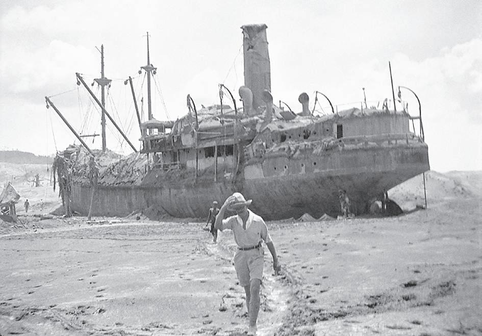 However it had been reported that there was a phosphate deposit on the Talele Islands, just off the coast of ‘Talele’. To get there I had bought a canoe for 15/- ($1.50) and set out with Lyn Noakes and 6 ‘line bois’. When we got to about 400yds (400m) from the Island the boat gave up the ghost and spilt straight up the middle, it didn’t sink entirely, but just floated. My comment to Lyn was “Well! We have to get to within 100 yards (100m) of the Island because that’s all I can swim”. We managed to paddle the canoe to the island, and then examined the island, but there were no signs of phosphate. The bois patched up the canoe with some sort of pitch they had managed to make so