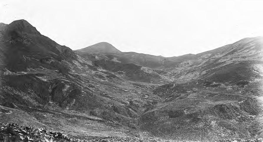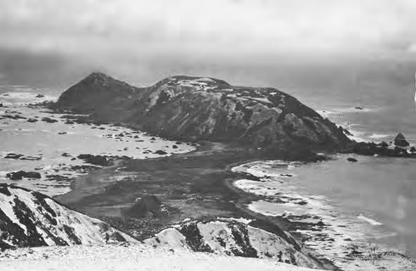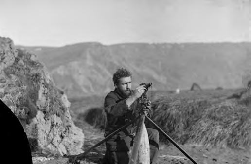 on continental drift in 1915. It was recognised that there were major similarities in the geology and palaeontology of continents separated by oceans, and there were vague ideas of foundered land bridges (Figure 3). Blake was to determine if Macquarie Island constituted a land bridge connecting Australia and Antarctica. A major part of Blake’s Macquarie Island work was also surveying, and this was persistently difficult using sighting poles and a theodolite in atrocious weather (Figure 4). The work was physically very hard: “I climbed Mt. Mawson [now Mt. Hamilton] and when I had done so another low cloud descended; so I returned to the hut. About noon the cloud lifted so I climbed the mountain “again” and struck a fog this time: (this is the seventh time I climbed this mountain and had no luck), I waited on the top this time for 2 hours and then the fog cleared, so I was able to observe angles from this station” (Dartnall, 2014). The 1971 topographic map of Macquarie Island changed only one of Blake’s altitude estimates of 23 named peaks, and Dartnall et al. (2001) considers that today the best estimates for one in three peaks remain his altitudes. His map (Figure 5) was excelled only in the era of satellites. From the beginning of his work, Blake identified evidence of glaciations – striae and till (Dartnall, 2014). Blake wrote of a “beautifully polished surface” on a boulder (Figure 7), and of “well-defined striae”. Blake also interpreted valleys as U-shaped glaciated valleys, but they are in fact V shaped (Figure 6). Lakes and other valleys were interpreted as tarns and cirque basins, and he also identified moraines and boulder clay, hanging valleys, and roches moutonnées. Blake attributed to ice-sheet glaciation the major role in forming the island topography (Mawson, 1915, 1943). Today this is not accepted, as the island is oceanic crust. More recently, faulting of oceanic crust along a transcurrent plate boundary has been identified as the principal factor in determining