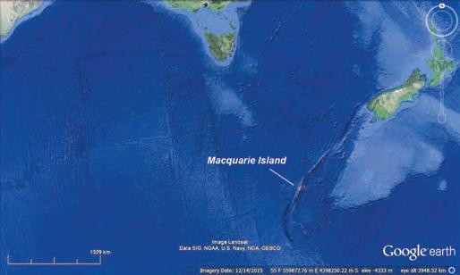 Macquarie Island lies halfway between Australia and New Zealand, and Antarctica. It measures 34 km north south, and a maximum of ~5 km in width. The first recorded visit to Macquarie Island was by the sealing ship Perseverance, which landed a gang of sealers in 1810, who reported the wreck of a “vessel of ancient design” (Mawson, 1943; Selkirk et al., 1990). The first map of the island was drawn in 1820 by Captain Thaddeus Bellingshausen, in command of an expedition for Emperor Alexander I of Russia.