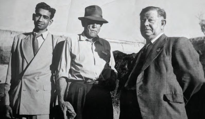 It was at Cobar in 1951 that I first met Joan and George, when returning from fieldwork at Broken Hill, during my period employed by the Geological Survey of New South Wales. I had been lucky enough to go on that journey to my place of birth, in company with my ‘boss’, E.O. (Ted) Rayner, and the Government Geologist, C. H (Charley or ‘Tim) Mulholland, to examine a supposed radium mineral deposit. It turned out to be essentially specimens from the known mineral deposit, Radium Hill, in South Australia, which had been visited by some collector or other, who, returning by train to Broken Hill, threw discarded specimens out the window. Not surprisingly we found the anomaly of the potential mine-site occurred in railway cuttings approaching Broken Hill. Our visit, as ‘Government experts’ (equipped with rapidly-acquired knowledge on radioactive minerals from a modern textbook), was newsworthy in Broken Hill, and was backed by the arrival of an airborne scintillometer flown in a helicopter from Canberra, by a geophysics group from the then-known Bureau of Mineral Resources. Travelling to Sydney on the then quite awful unsealed road, we broke the long return journey at Cobar, and the two senior members of the party decided it was appropriate to visit the then operating C.S.A. copper mine. Charley Mulholland had carried out work at the mine prior to its re-opening from a much earlier operation. Indeed, with, (I think) A. C. Lloyd, they made some significant and practically useful observations and deductions about the mode of cross-cutting veins which controlled the gold mineralisation there.