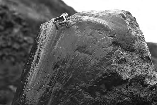 Fig. 7. Scratched & polished boulder of Eagle Point Gabbro collected in The Nuggets creek. This surface may be better interpreted as faulted and slickensided (see Varne and Rybenach, 1972). Photograph L.R. Blake, State Library NSW, Home and Away – 36310.