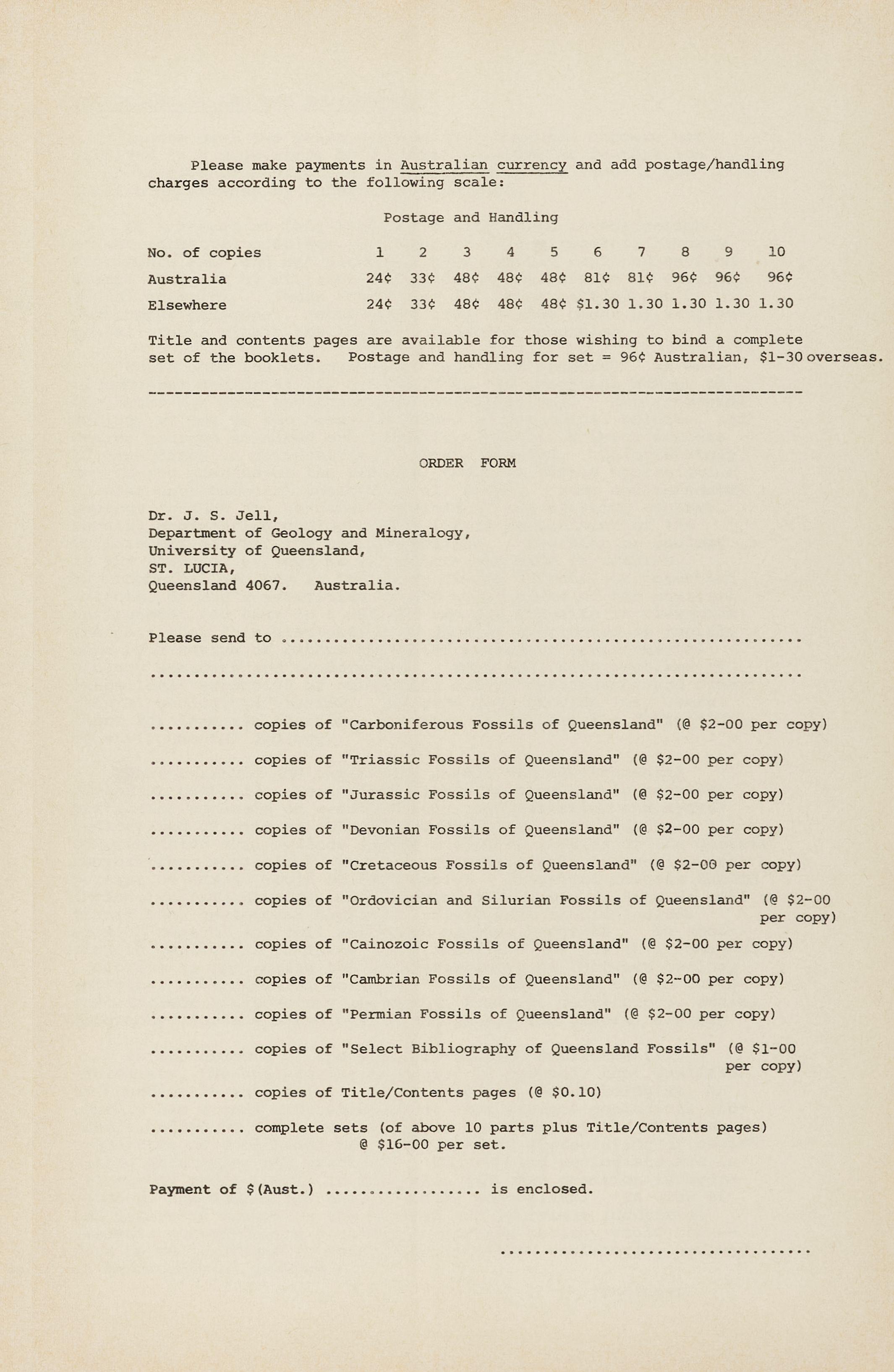 copies of "Jurassic Fossils of Queensland" (@ $2-00 per copy)
