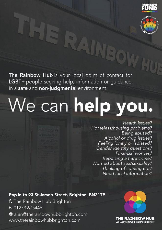 The Hub are always looking for new volunteers –if you are interested, contact Joel Boardman, the Hub’s Volunteer Coordinator, on joel@therainbowhubmanager com, or email Alan on alan@therainbowhubbrighton.com