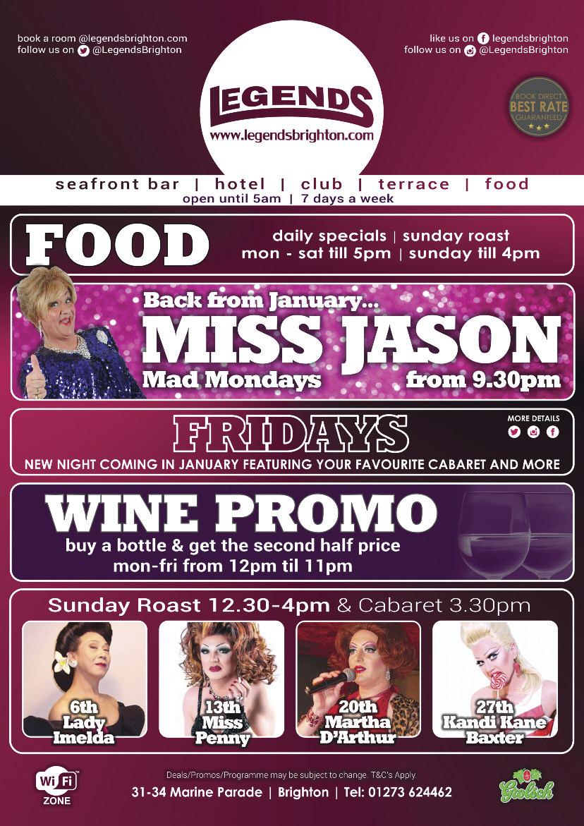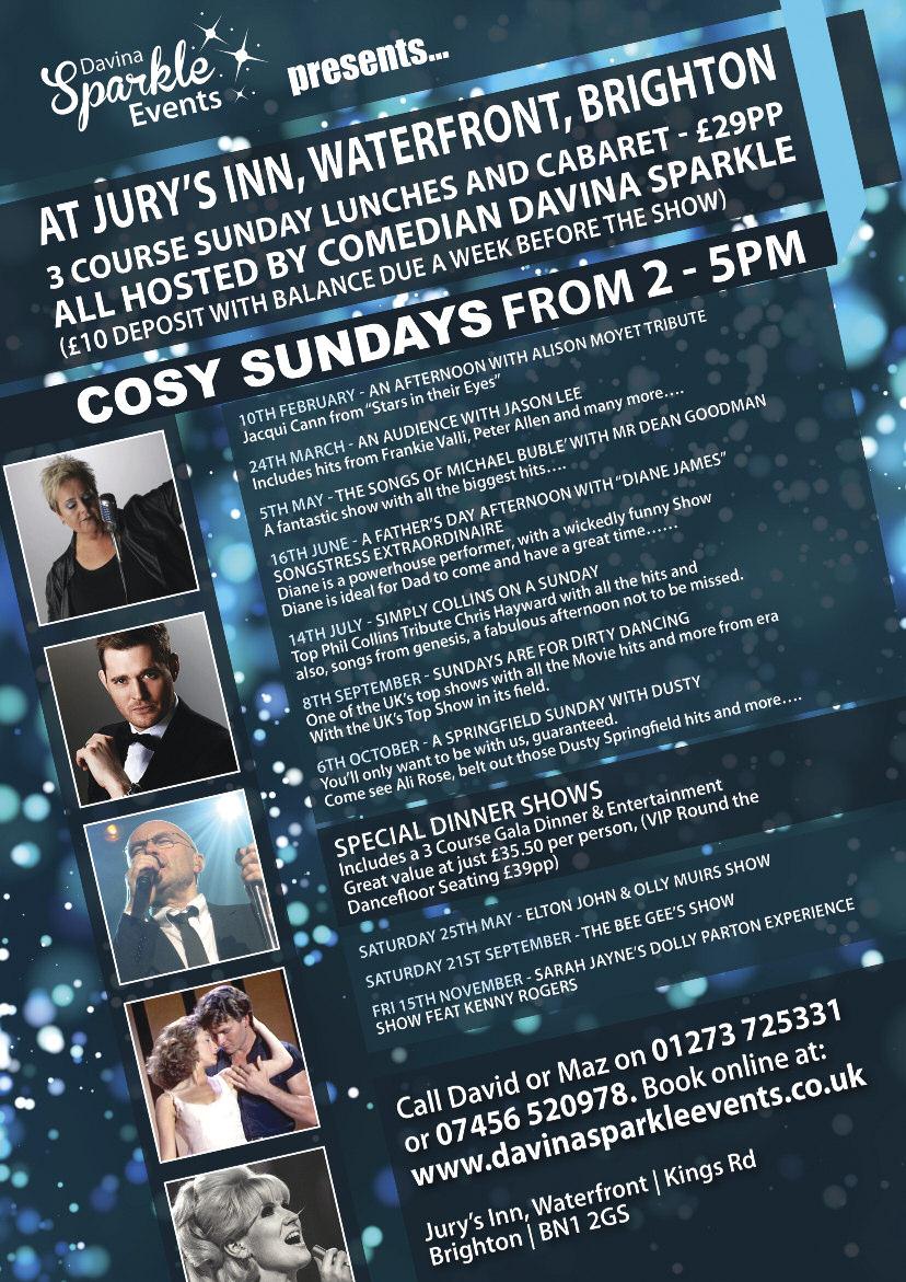 out 2019, comedian Davina Sparkle will host a series of unday’ lunches from 2-5pm in the Nobless Suite at nn Brighton Water front, costing just £29 per person