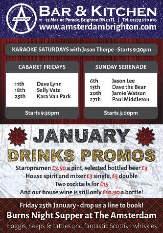 h the balance due a week before sy Sunday’ in October, featuring Hear t & Soul, and the food was spot on and the enter tainment was first class Call Maz or David on 01273 725331 to reserve your place