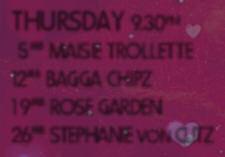 Socrates, Brian Stacey, Glen Stevens, Craig Storrie, Duncan Stewart, Paul Thorn, Roger Wheeler, Mike Wall, Morham White, Kate Wildblood