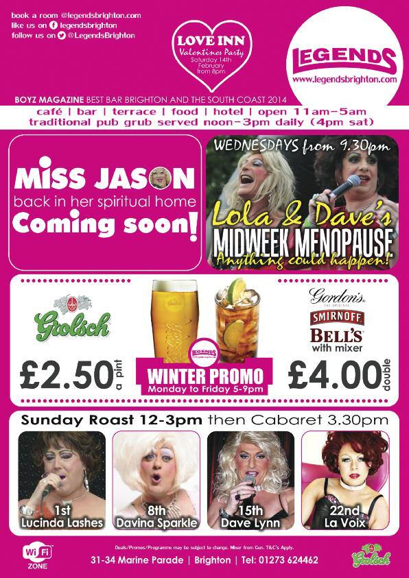 “They were great days and I’ve so many happy memories, but now’s the time to move on, set Hove alight and concentrate on getting all the locals back out into the local gay bars again I’m looking forward to welcoming customers to the Grosvenor and hope friends old and new will come along to my opening party on Valentine’s night, February, 14 at 9 30pm when I’ll be joined by Maisie Trollette and a few surprise guests "