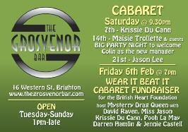 Collin, who is a former Golden Handbag 'Landlord of the Year', is bringing regular cabaret back to Hove on Saturday nights at 9 30pm He will be experimenting with new midweek events once he has got his booties under the table and he intends to try and win back his title of 'Landlord of the Year' and see the Grosvenor voted 'Best Small Bar' at the Golden Handbags in June this year