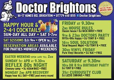 ) Doctor Brighton's will celebrate its ninth bir thday under its cur rent owner on Saturday, March 10 and promise a par ty to remember Owner Charles Child, says: "Wow it only seems like y esterday that I got the key s for the pub, how time flies w hen y ou’re hav ing fun!"