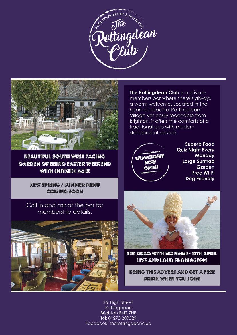 89 High St Rottingdean, BN2 7HE 01273 309529 f Therottingdeanclub