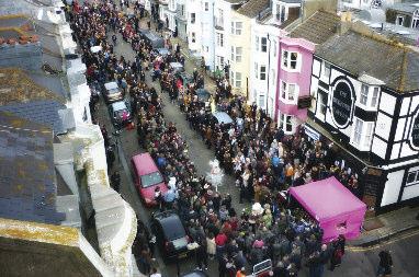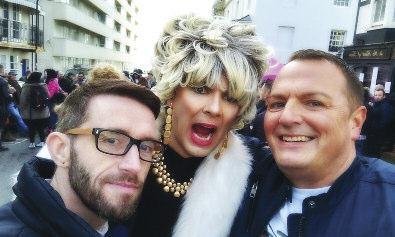 ) The annual Easter Bonnet Parade and Charity Drag R aces, organised between the Bedford Tavern and Grosvenor Bar in Hove, drew a huge crowd to Little Western Street on Easter Sunday An amazing £1,883.66 was raised for the R ainbow Fund to distribute through their independent grants programme to LGBT/HIV groups and organisations providing effective frontline services to LGBT+ people in Brighton & Hove