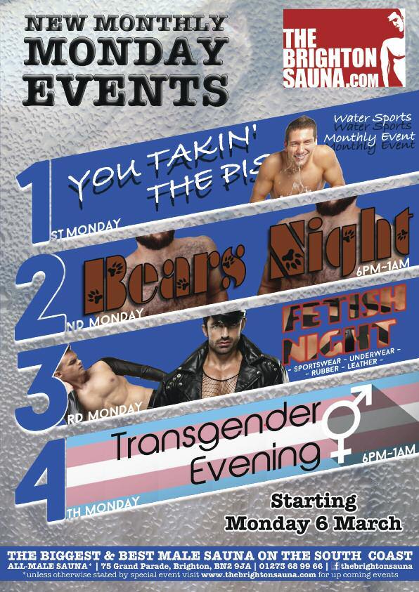 • Sauna Fastest at The Brighton Sauna (HIV testing): walk-in, (no appointment) rapid HIV testing service for men who have sex with men,results in 20 minutes: Wed: 6–8pm (STI testing available)