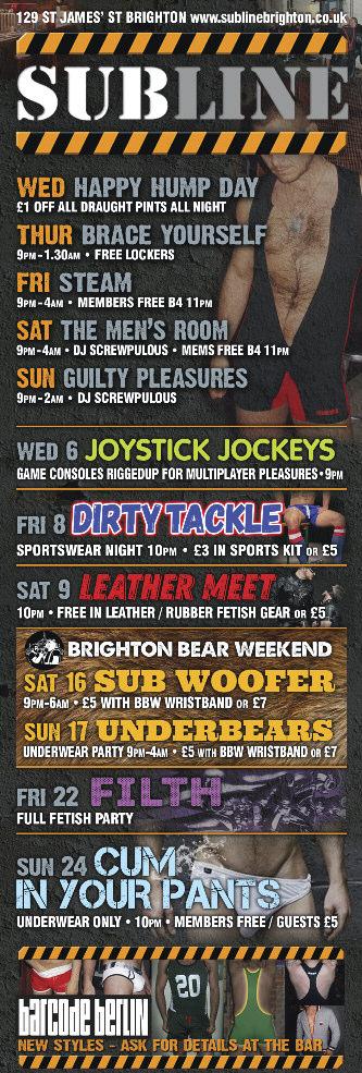 Brighton Bear Weekend 2018 takes place from Thursday, June 14 - Sunday, June 17, kicking off with a quiz night at the Camelford Arms on Thursday 14 at 9pm, followed by a welcome par ty at Bar R evenge on Friday 15 from 711pm, where you can meet visiting bears and pick up wristbands that you have ordered online