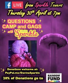 DAVINA SPARKLE’S ONLINE SHOW RAISES £2OO FOR THE BRIGHTON RAINBOW FUND
