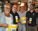 Pictured lef t to right: Chris Gull, Chair of Rainbow Fund, Chris Stringer from Christopher Stringer Funeral Directors, Danny Dwyer from Bear-Patrol, and Ben Williams, manager of the Camelford Arms