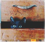 **She enters, I’m told, via the back and cleverly pushes the top drawer open to make her little space. Quite the stir the first time my sister was working, and suddenly the drawer, like furniture possessed, started sliding out by itself!