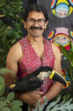 ) Gavin Bennett, Mr Brighton Bear 2020 winner, received part of his prize, a portrait by Fraser Dickson of Little