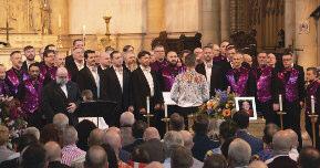 Reverend Michael Hyde, of The Village MCC, read the story of James’ journey from Liverpool to London and then Brighton, interspersed with speakers including Chris Gull, chair of the Brighton Rainbow Fund, Andrew Kaye, of Latest TV, James’ niece Emma, and many others, who rose to read poems, say some final words and remember the changes James made to their lives David R aven (Maisie Trollette) and Jason Sutton (Miss Jason) sang Over the Rainbow and the Actually Gays Men’s Chorus and Brighton Gay Men’s Chorus joined together to sing a beautifully evocative rendition of Snow Patrol’s Run The whole church wept while they sang James had chosen Blake’s Jerusalem as his hymn