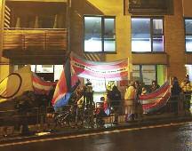 Queer AF, the community activist group from Brighton, were notified that WPUK’s fringe event was to be held at the BMECP centre in Brighton, who later stated they were unaware of WPUK’s discriminatory past Queer AF organised counter action: they challenged WPUK members who were canvassing and handing out anti-trans leaflets outside the Labour Par ty Conference and at 6pm Queer AF marched to the BMECP centre to make noise outside of the building, which was guarded by three private security people at the main entrance and there were three riot vans wor th of police around the building