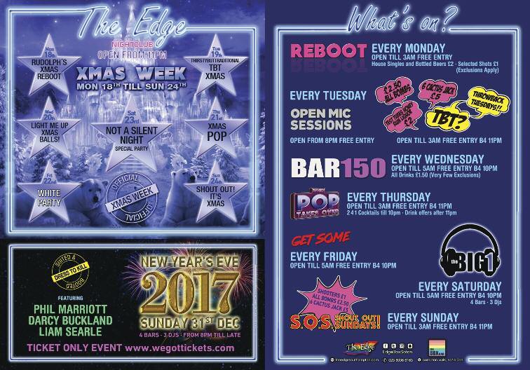 • Friday 22: Christmas Buffet with food parcels available for people to help them over the Christmas and New Year period