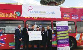 Following the press conference an open top bus sponsored by Brighton & Hove Bus & Coach Company toured the city, visiting Churchill Square, Brighton R ailway Station and Brighton Marina At each stop the Carers Hub team engaged passers-by and distributed information leaflets to generate awareness for the new initiative Information stalls were set up at Brighton R ailway Station, One Stop Travel Shop and Jubilee Librar y