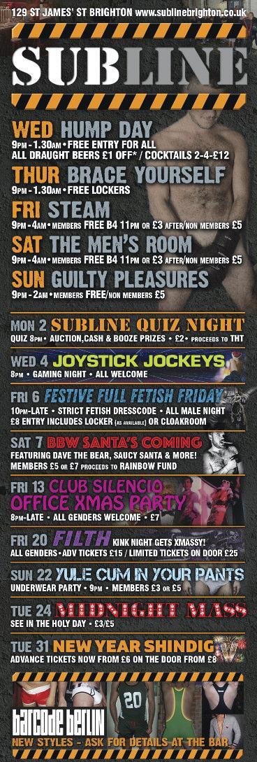 ) Subline Brighton are launching a new monthly quiz night on Monday, December 2 from 7pm As this month’s falls just after World AIDS Day, Subline will be auctioning off some awesome experience prizes between rounds with proceeds going to Terrence Higgins Trust