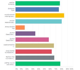 The survey, which will remain open indefinitely, is proving to be really helpful in our planning. We now have a clearer idea of how the physical space can be constructed to allow the centre to be an accessible, safe, comfortable and welcoming place for all the diverse LGBTQ+ communities in Brighton & Hove, and of the systems and policies that will further those ambitions.