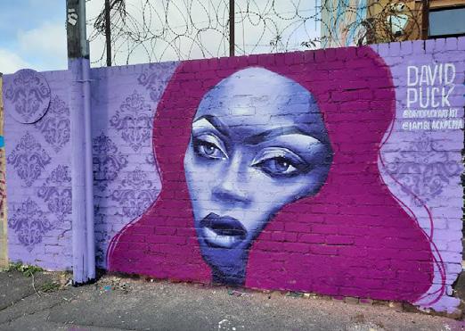 Ginny isn’t the only West Midlandsbased queen that Puck has created a mural for. Black Peppa – a drag performer, model and dancer and Church of Yshee winner 2019 – has also received a painted tribute. The mural of Black Peppa can be found in Digbeth, an area well known for its graffiti and street art.